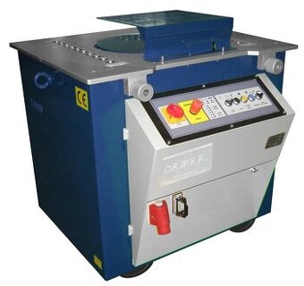 Cena: Dohodou. Ohýbačka betonářské ocele, výztuže, roxorů a profilů P 44.EVO, výrobce OFMER (I), rok výroby 2025, krátkodobě použitá jako výstavní model. Popis: Stroj klasické konstrukce s otočným ohýbacím kruhovým talířem o průměru 460 mm, masívní hladkou deskou s posuvnou kotevnímí lištou s otvory pro kolíky na obou stranách desky, určen pro středně těžké provozy. Max. průměr ohýbaných tyčí při pevnosti materiálu do 650 N / mm2 je pro 1tyč 38 mm, pro 2 tyče 30 mm, pro 3 tyče 24 mm, do 850 N/mm2 je pro 1 tyč 36 mm, pro 2 tyče 28 mm, pro 3 tyče 22 mm. Hmotnost stroje 469 kg, pracovní plocha 1050 x 950 mm, pracovní výška 890 mm, el. instalace 400 V, motor 4,0 kW, 50 Hz, otáčky výstupního hřídele 6 ot. / min, provoz manuální / poloautomatický, nastavení úhlů předvolba pomocí zástrčných kolíků, ovládání chodu vpravo / vlevo nožním pedálem a přepnutím, boční stavitelné lišty. Příslušenství v ceně stroje: 7 výměnných pouzder D 60-70-80-95-120-150-175 mm 1ks 4hr. zarážka, tři čepy pro pouzdra d 42mm, zákla