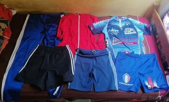 Predám pánske športové oblečenie. Tepláky Associes sportswear veľkosť 164- 75 kč. Červená športová mikina- 75 kč. Cyklistický dres Wermarc sportswear veľkosť XS-44- PREDANÝ. Čierne kraťase Adidas aj s vnútornou výstelkou veľkosť 30- 150 kč. Modré kraťase Adidas veľkosť M- 150 kč. Kraťase France 98 C&A veľkosť 134- 75 kč. Slovensko- Myjava 7 km od hraníc z ČR