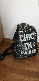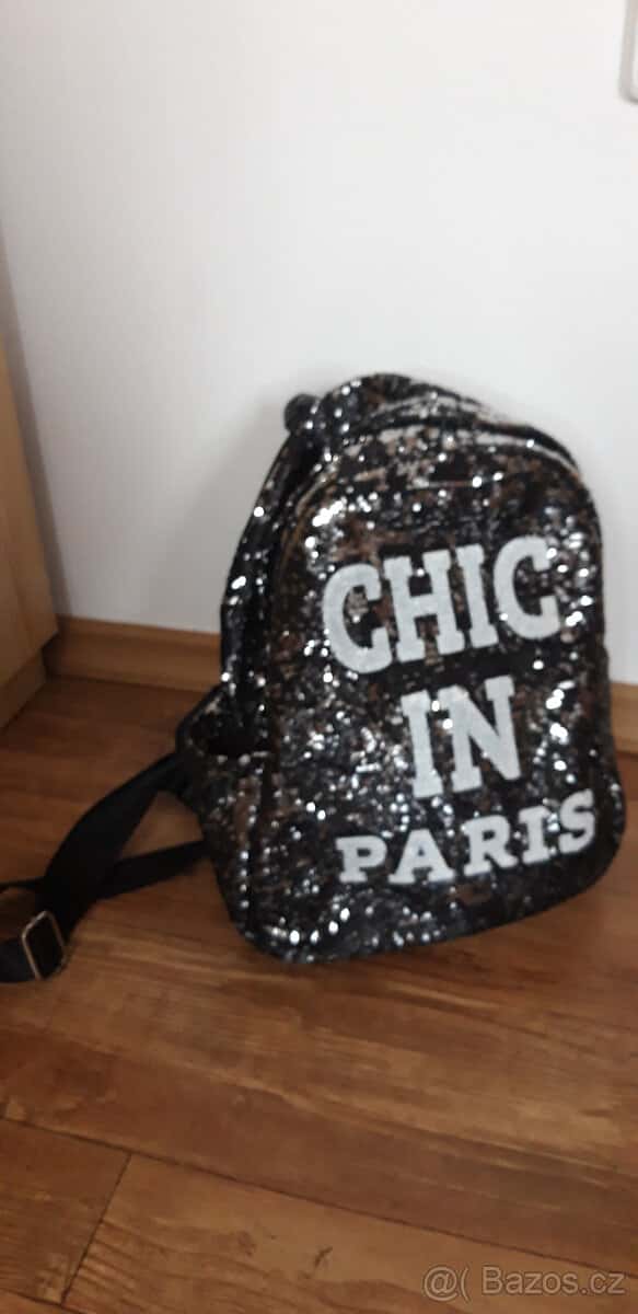 Zachovalý dívčí batoh, černý s flitry, velikost 36 cm, cena 220 Kč