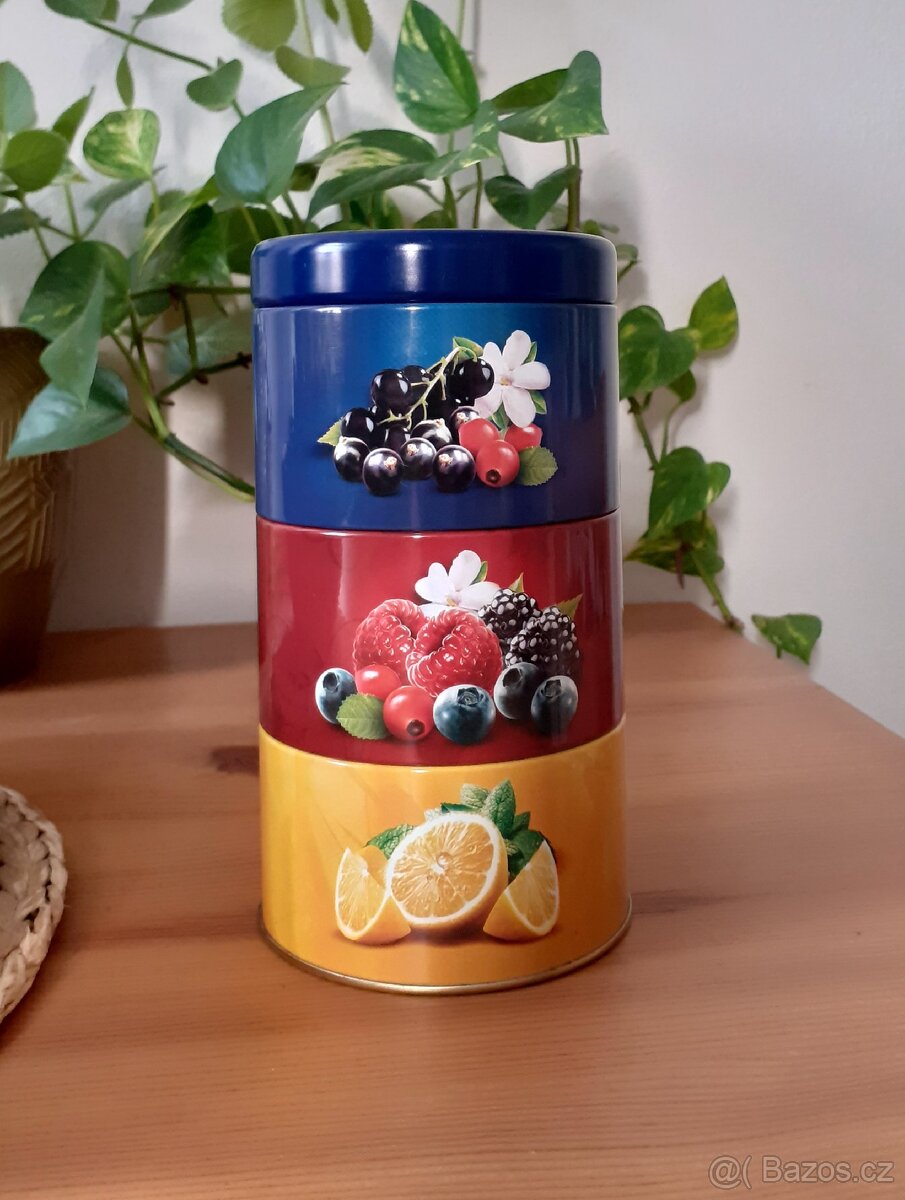 Plechová dóza na potraviny, krabice na špagety, piškoty, aj.