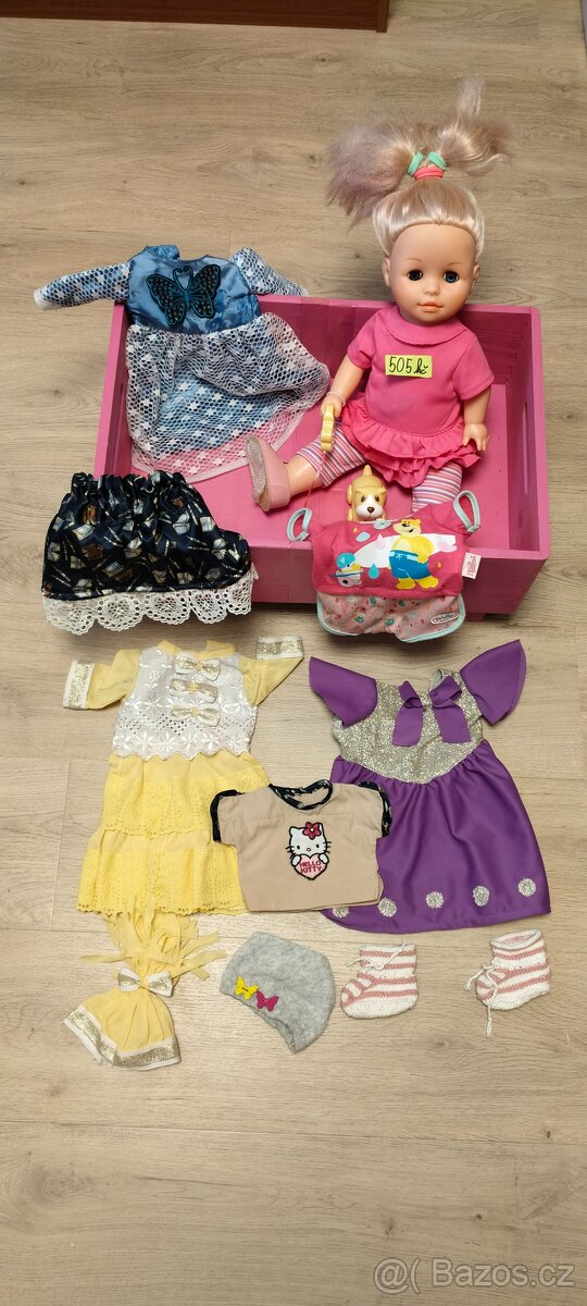 s pejskem, mluvící , chodící, s dalšími oblečky a růžovou bedýnkou