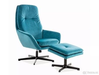 Křeslo s podnožkou FORD Velvet tyrkysové, zánovní.