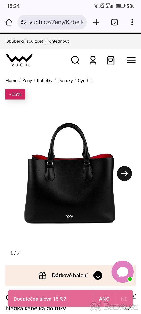 Prodám kabelku Vuch barvy černé a vevnitř červená. Popruh přes rameno. Platba pouze na Revolut. Zasilkovna nebo pošta.
