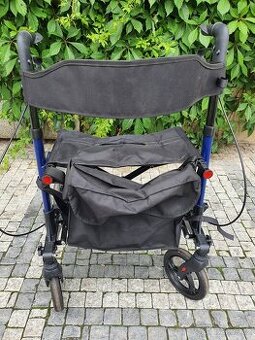 Moderní odlehčené chodítko. Příjemně se na něm sedí díky zádové opoře. Má nenafukovací kolečka, variabilní výšku rukojetí. Jde složit do malých rozměrů.