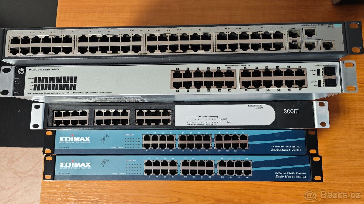 Cena: Nabídněte. Prodám použité switche 1Gbit: HP 1950 JG961A HP 1820-24G J9980A 3COM 2824 100mbit: 2x EDIMAX ES-3124RL