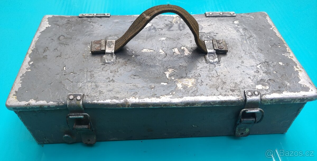 Prodám starou značenou hliníkovou vojenskou bednu. Rozměry viz. foto. Cena 300,.Kč Tel.792487855