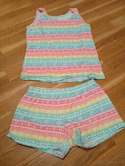 Dívčí komplet duhový letníDívčí komplet duhový se vzory letní, obsahující kraťasy a tílko velikosti 9-10 let