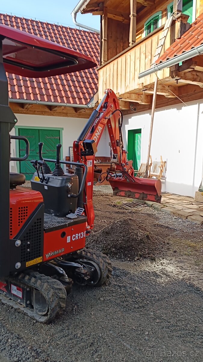 Cena: V textu. Nabízím výkopové práce minibagrem o váze 1,3 tuny. Bagr má gumové pásy, neničí asfalt, dlažbu, beton. mimoosé kopání do hloubky 2metry, lžíce 20cm, 30cm, svahovka. Cena práce po tel. domluvě