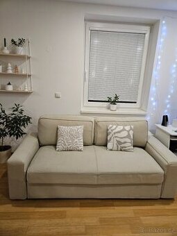Prodám 3místnou rozkládací soupravu Ikea se snímatelným pracím potahem.Šířka 203cm,hloubka 90cm.K sedačce přidám 2 náhradní potahy v krémové a tmavě šedé barvě viz. foto. Vše ve velmi dobrém stavu. Pouze vlastní odvoz.