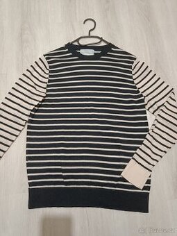 Nenošený, 100% merino vlna, velmi jemná a příjemná na nošení, rozměry: přes prsa - 49 cm, délka od ramene - 64 cm, je pružný. Na rukávu je drobná skrvnka, téměř není vidět, všimla jsem si ji až při focení.