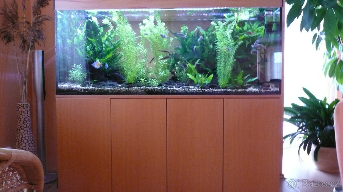 Prodám akvarijní komplet : Akvárium 150 x 60(výška) x 50(hloubka) cm Skříňka :150 x 74(výška) x 50 Osvětlení : Zetlight Lancia/WiFi 150 cm/56W Filtrace : filtr od Rataje – Blau SSF.2240 do 500l CO2 set : Profi CO2 set s elektromagnetem + lahev 2,1 l Předfiltr SunSun HW-603 Vše ve výborném stavu včetně ryb a rostlin.
