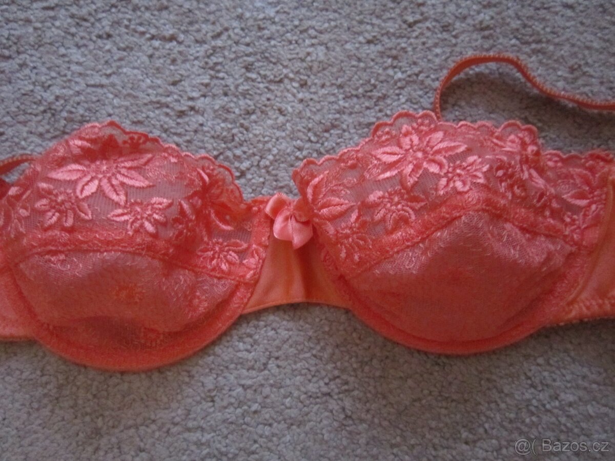 Prodám novou podprsenku,lososové barvy,vel.75B. Luxusní vyšívaná krajka na tylu. Materiál 56% viskóza +24% bavlna +18% nylon +2% elastan Cena 110kč + poštovné