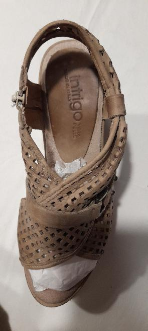Prodám béžové, kožené sandále na vysoké platformě zn. Intrigo Itálie vel. 40. Původní cena Kč 2 250,- nyní Kč 200,-. Osobní odběr nebo dobírka.