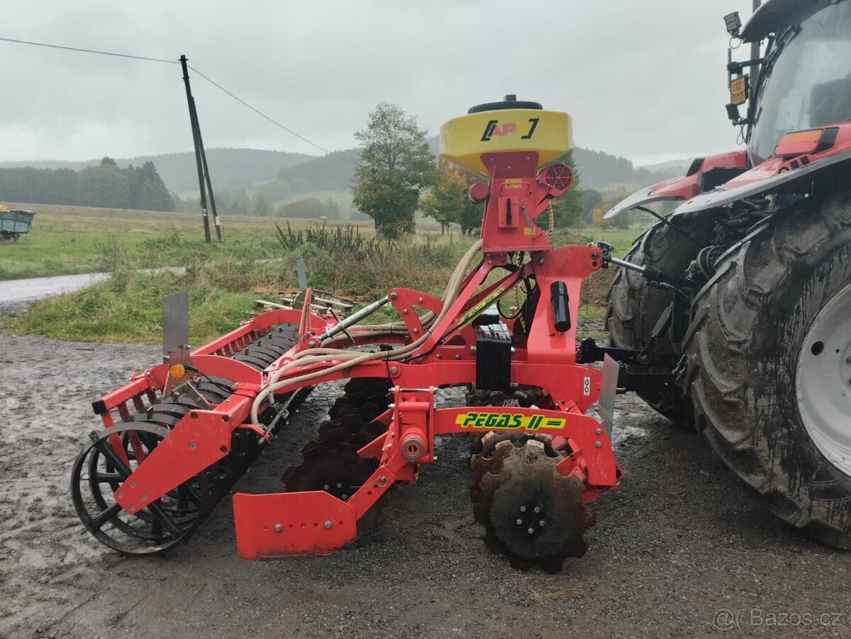 Prodám téměř nejetý diskový podmítač OpallAgri PEGAS II 3 - pracovní záběr 3 metry, průměr pracovních disků 520 mm, pracovní hloubka do 12 cm, přídavné závaží 330 kg, 24 disků, včetně secího stroje APV PS 120 M1.