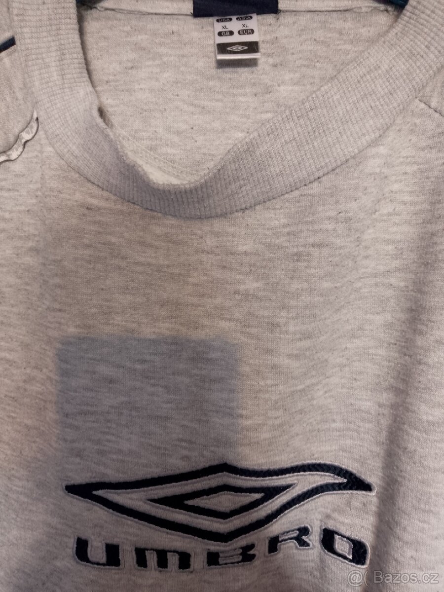 Šedá mikina UMBRO, velikost XL, vyšívané logo zepředu i vzadu u krku, reflexní prvky.