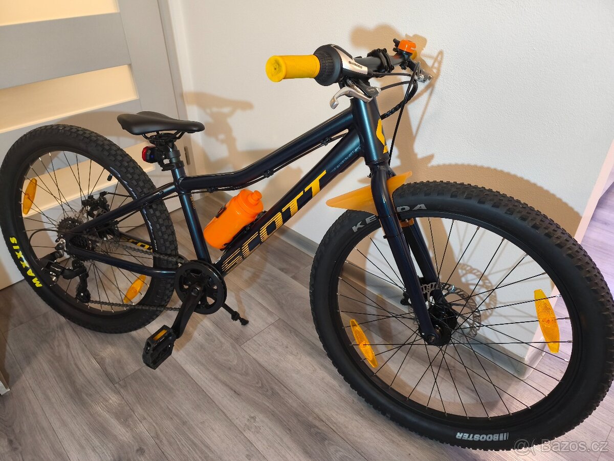 Nabízím kvalitní dětské kolo značky Scott Scale velikost 24, s pevnou vidlicí, lehký hliníkový rám, osmirychlostní přehazovačka Shimano, kotoučové brzdy. Váha kola je 10,2kg. Je opravdu lehoučké. Kolo je vhodné i na traily, cyklostezky a do města. Kolo je olepené ochrannou fólií proti poškrábání, která se dá samozřejmě sundat. Nový zadní plášť. Je ve výborném stavu, bez vad a po celkovém servise. Kolo je po jednom dítěti. Pořizovací cena byla 15000kč. Nyní prodáváme za 9300kč Rožnov pod Radhoštěm