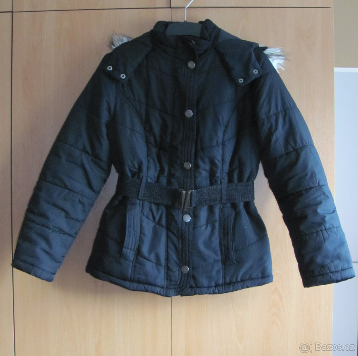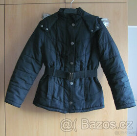 Černá zimní bunda F&F, nošená, ale stále v dobrém stavu. Velikost 40, prsa 50 cm, pas 47 cm, délka 65 cm, rukáv od krku 70 cm.