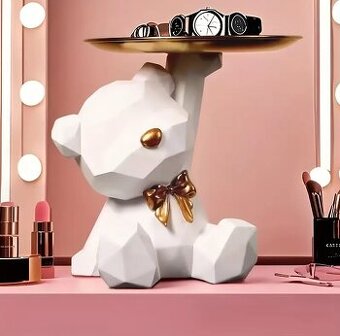 Vneste do svého domova nádech elegance i hravosti! Tento unikátní medvídek z kvalitní pryskyřice s lesklou zlatou mašlí je nejen krásnou dekorací, ale i praktickým organizérem pro vaše šperky, kosmetiku, klíče nebo drobnosti. Rozměry: Výška: 17 cm Šířka: 13 cm + Poštovné