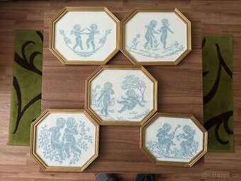 5x vyšívané obrázky (ruční práce), křížková výšivka