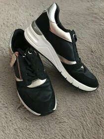 Černé botasky na vyšší platformě. Velikost 39. Délka stélky 25cm. Pro lepší obutí ze strany zip.