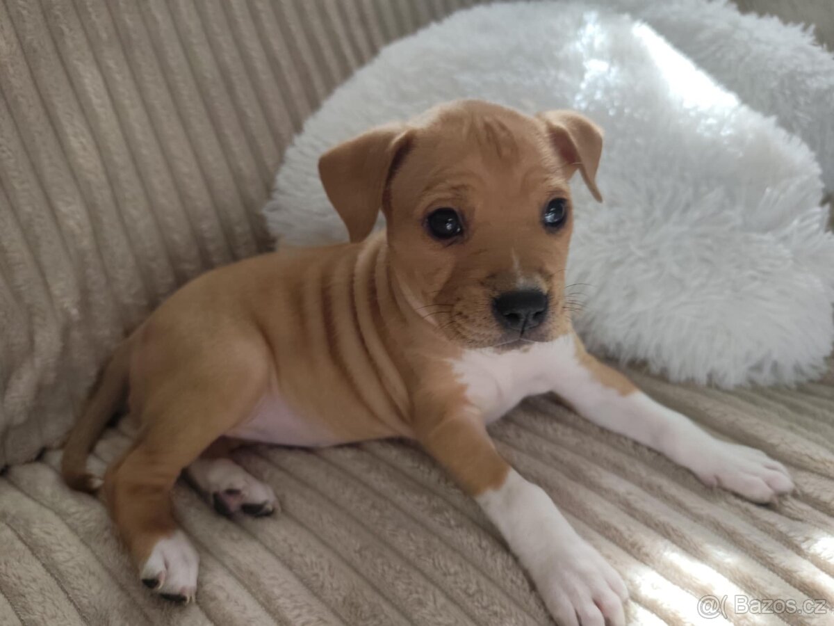 Nabízím do dobrých rukou štěňátko fenku , Americký Stafordšírský Teriér. Narozená 8.1. 2026. Prosím SMS