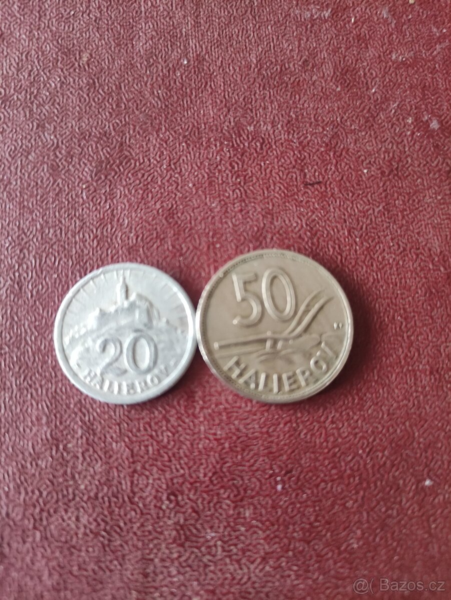 Slovensko 20 halířů 1942 a 50 halířů 1940 stav dobrý na fotu. Posílám zasilkovnou po zaplacení na účet. Poštovné 90 Kč.