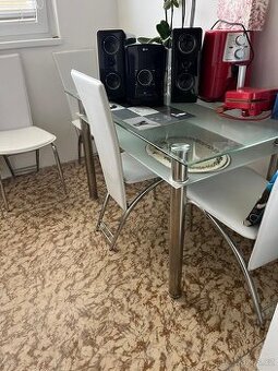 Prodám elegantní jídelní stůl s deskou z tvrzeného čirého skla a praktickou spodní odkládací policí z mléčného skla. Stůl stojí na stabilních chromovaných nohách. Moderní design, který opticky nezmenšuje prostor. Parametry: Materiál: Tvrzené sklo, nerezová ocel (chrom) Rozměry: 120 × 70 × 75 cm Stav: Velmi dobrý, nepoškozený. Cena: 1000 Kč
