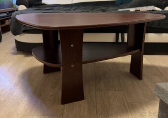 Prodám zachovalý konferenční stolek v tmavém dekoru dřeva (wenge/tmavý dub). Stolek má zajímavý, moderní tvar kapky (trojúhelník se zaoblenými hranami), který oživí každý obývák a není tak „okoukaný“ jako klasické obdélníky. Ke stolu patří ještě nahoru sklo(v případě zájmu mohu dodat) Rozměry : • Délka: 117 cm • Šířka : 69,5 cm • Výška: 53 cm Cena : 700kč, v případě rychlého jednání možnost slevy. Nejlépe osobní předání Beroun a okolí. (Stůl před předáním rozmontuji, aby se Vám to lépe vezlo) Hlavní výhody: • Praktická odkládací police: Spodní patro je ideální na ovladače, časopisy nebo knížky, takže na vrchní desce zůstane uklizeno. • Stav: Stolek je stabilní, nese jen běžné známky používání (viz foto). • Design: Ergonomický tvar bez ostrých rohů (přátelštější k nohám i dětem).