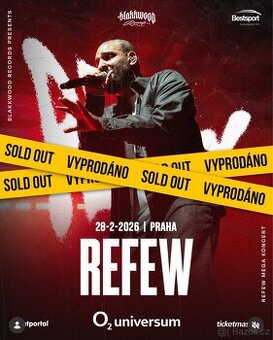 Prodám 2 lístky na Refew 28.2.2026 O2 universum Praha Lístky lze prodat i samostatně Cena 1200 za oba Lístky jsou na stání