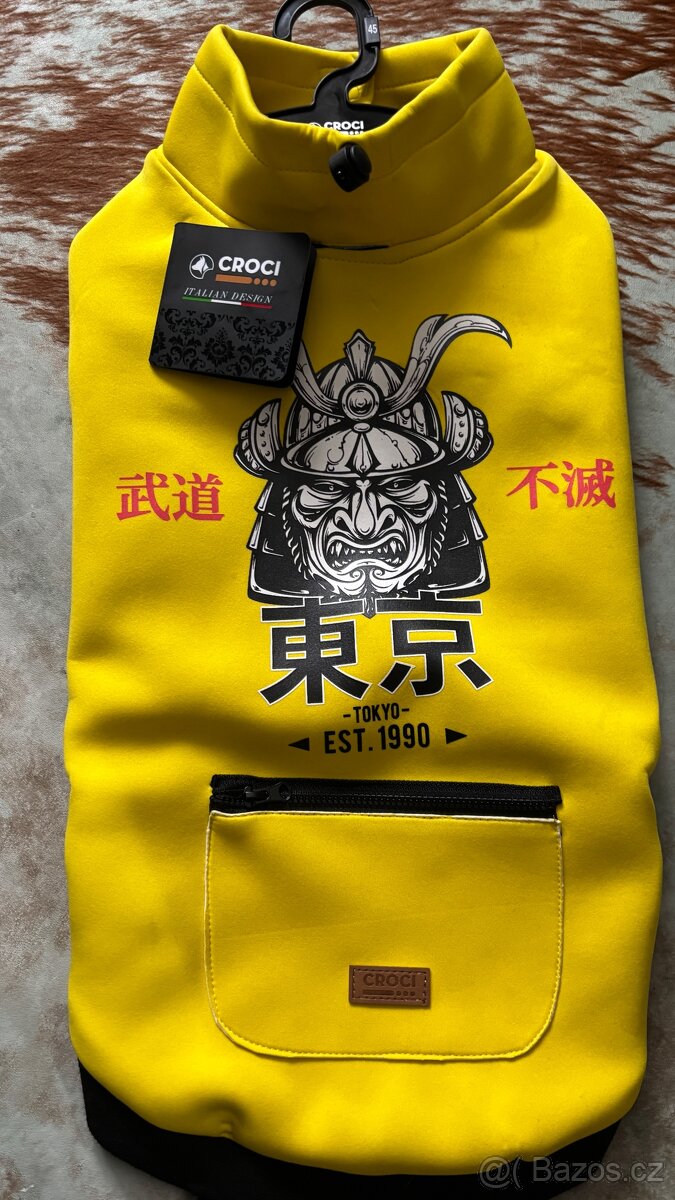 Oblek zimní pro pejska. Italský výrobce velmi kvalitní . Velikost 45 . Záda od kohoutku ke kořeni ocasu 45cm. Krk obvod 38cm, hrudník 57cm. Viz foto. Nový nepoužitý s visačkou. Původní cena 60e (1500kč) . Pokud se nedovoláte napište SMS prosím.