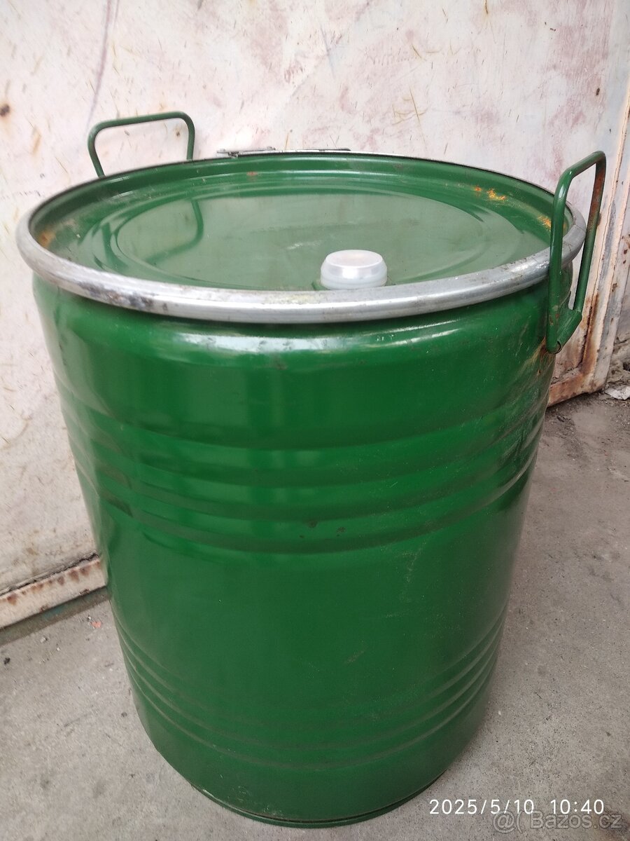 Cena: Dohodou. Prodám plechový sud s víkem 50L.