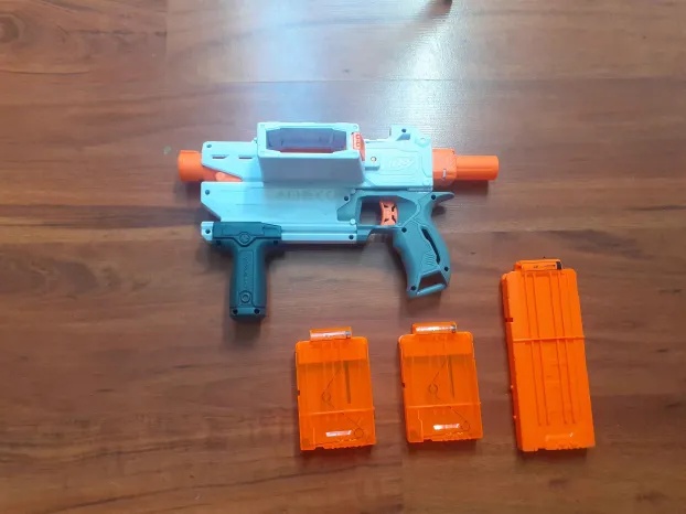 Prodám Nerf Modulus Mediator, plně funkční, pečlivě udržovaný, včetně příslušenství a šipek. > Modulární blaster Nerf Modulus Mediator > Plně funkční, střílí bez problémů > Mechanismus spouště funguje hladce > Pečlivě udržovaný, skladován doma > Místy drobné známky používání (běžné opotřebení) > Včetně 2 menších zásobníků a 1 většího zásobníku Osobní předání v Pardubicích nebo možnost zaslání přes Zásilkovnu/Českou poštu