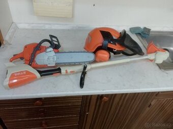 Dětská pila, křovinořez a helma
