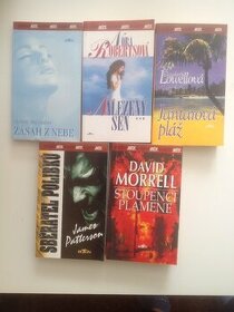 Prodám romány: D. Macomber - Zásah z nebe (r. 1999), . Robertsová - Nalezený sen (2003), E. Lowellová - Jantarová pláž (2002), J. Patterson - Sběratel polibků (1999) a D. Morrell - Stoupenci plamene (2000). Vydáno v nakl. Alpress v edici Klokan. Knihy jsou brožované, zachovalé v dobrém stavu.