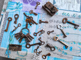 Nabízím na prodej mix starých klíčků, většinou malé velikosti pro šperkovnice, krabičky, hodiny...atd. Půdní nález, nečištěno, jen lehoulinká povrchová rez. Prodej a cena pouze jako celek. Zaslání balíkovnou, zásilkoivnou je možné.