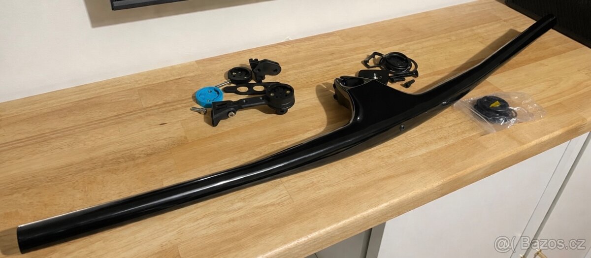 Nabízím úplně nový kokpit. Měl jsem ho na stavbu, ale nakonec nevyužiji. Ke kokpitu je i originál úchytka na Garmin, kterou jsem dokupoval. Šrouby jsou titanové. Technické specifikace • Výrobce: KOCEVLO • Materiál: Karbon T1000 • Objímka řídítek: integrovaná (jednodílná konstrukce) • Šířka řídítek: 740 mm • Zdvih (rise): 0 mm • Zahnutí dozadu (backsweep): 7° • Zahnutí nahoru (upsweep): 5° • Offset: −12 mm • Délka představce: 60 mm • Průměr krku vidlice: 1 1/8” (Ø 28,6 mm) • Průměr úchopu: 22,2 mm • Možnost zkrácení: ano, až na 630 mm • Povrchová úprava: UD karbon lesk • Max. hmotnost jezdce: 90 kg • Hmotnost: 232 g (70 mm, bez krytky hlavového složení)