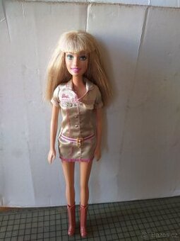 Mattel, panenka Barbie. Má krásné hebké vlasy. Bohužel se povolily nohy, takže se jí houpou jako hadrové panence. Ale drží.