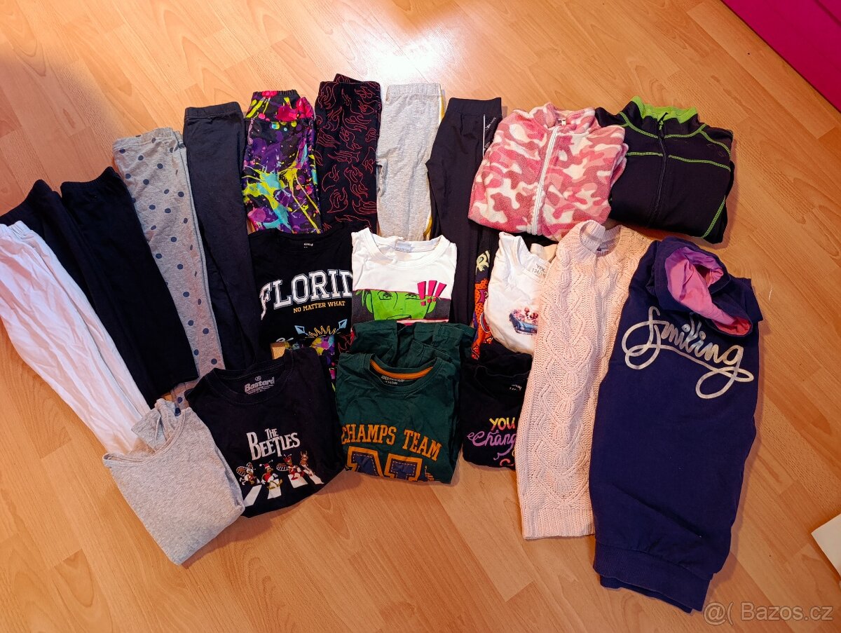 Prodám dívčí mix 20ks 140-146 Vše v dobrém stavu. 8x leginy sportovní,zateplená a obyč, 2x triko dl.rukav,5x je.rukav,2x teple mikiny na zip bez kapuce,mikinové šaty a světové šaty,jedny kraťasy Osobní odběr nebo kód zasilkovny