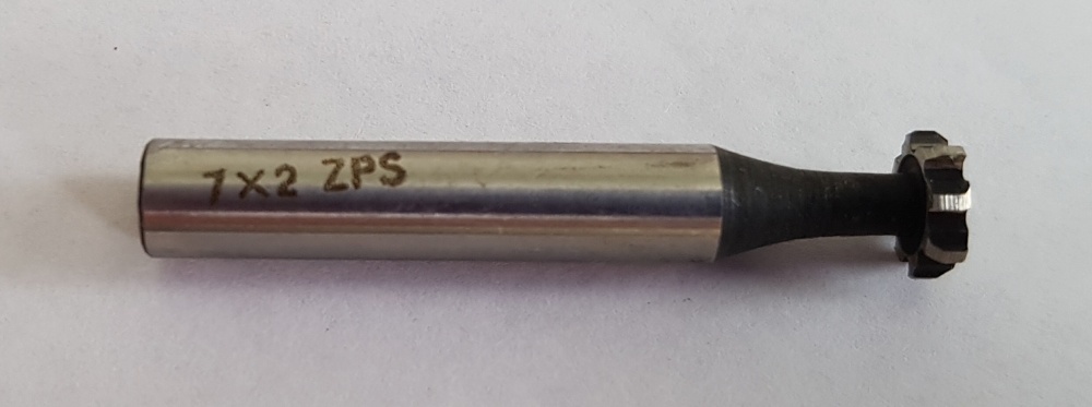 Fréza na drážky úsečových per 7x2 ČSN 222185 HSS výrobce ZPS nová průměr pera 7mm šířka pera 2mm skutečný průměr 7,5 h11 stopka průměr 6mm