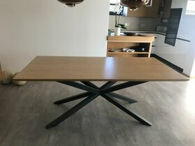 Prodám zánovní jídelní stůl CENTO -deska dub natur - lak -rozměry desky 200 x 100 cm, výška stolu 78 cm -výška desky stolu 4 cm, hrana desky styl swiss -centrální podnož k jídelnímu stolu - lakovaná ocel – velmi odolná prášková vypalovaná barva antracit Jídelní stůl CENTO je výjimečný svojí propracovaností. Jedinečný je svojí zdánlivou lehkostí. Ve skutečnosti se ale jedná o velmi pevný a stabilní jídelní stůl.
