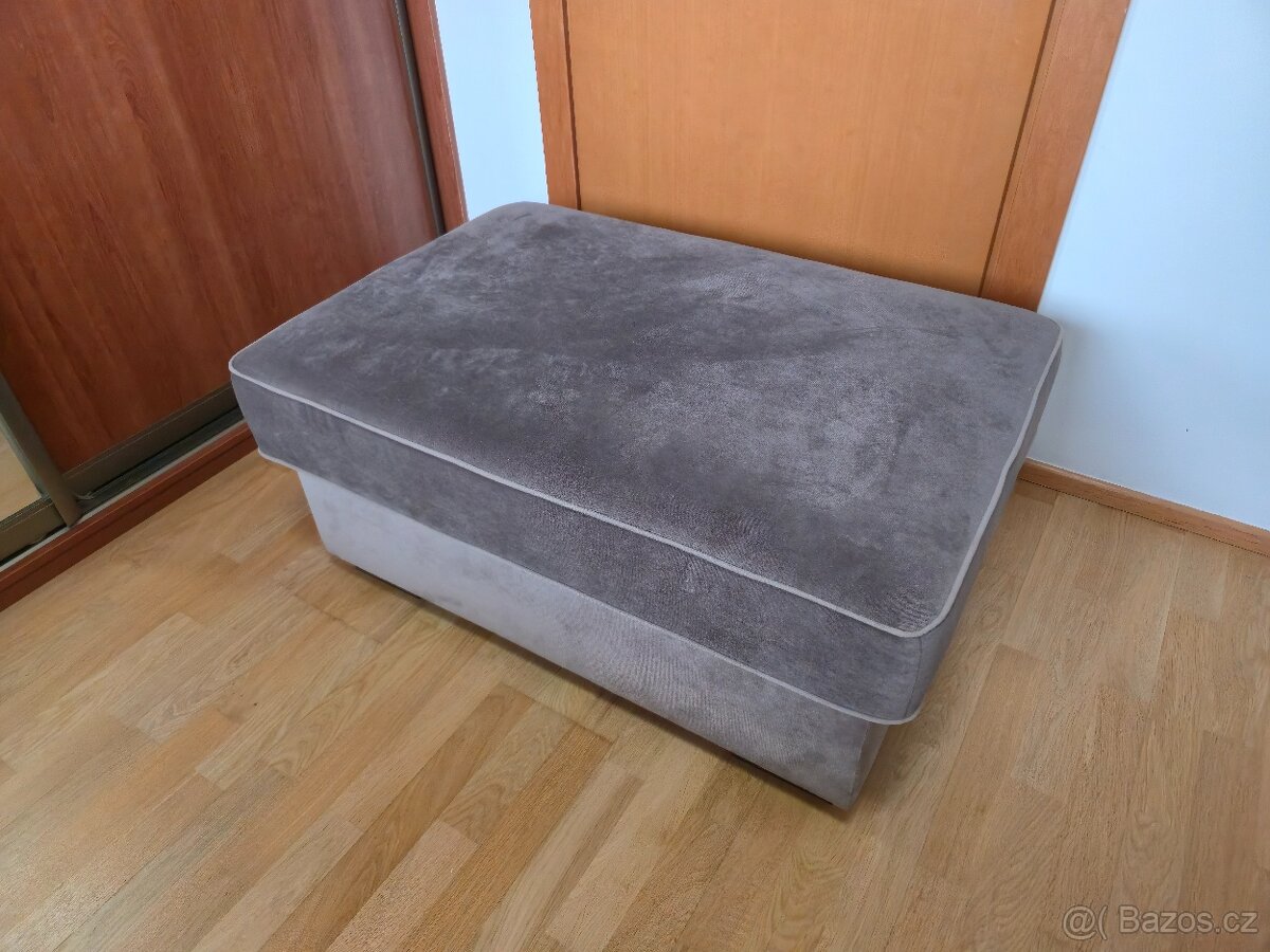 Prodám dizajnový taburet značky Hom'In šedé barvy a ve fantastickém stavu. Koupil jsem ho v XXXLutz spolu se sedačkou, ale vůbec se nepoužíval, sedělo se vždy jenom na gauči. Rozměry jsou 100x70x43 cm.