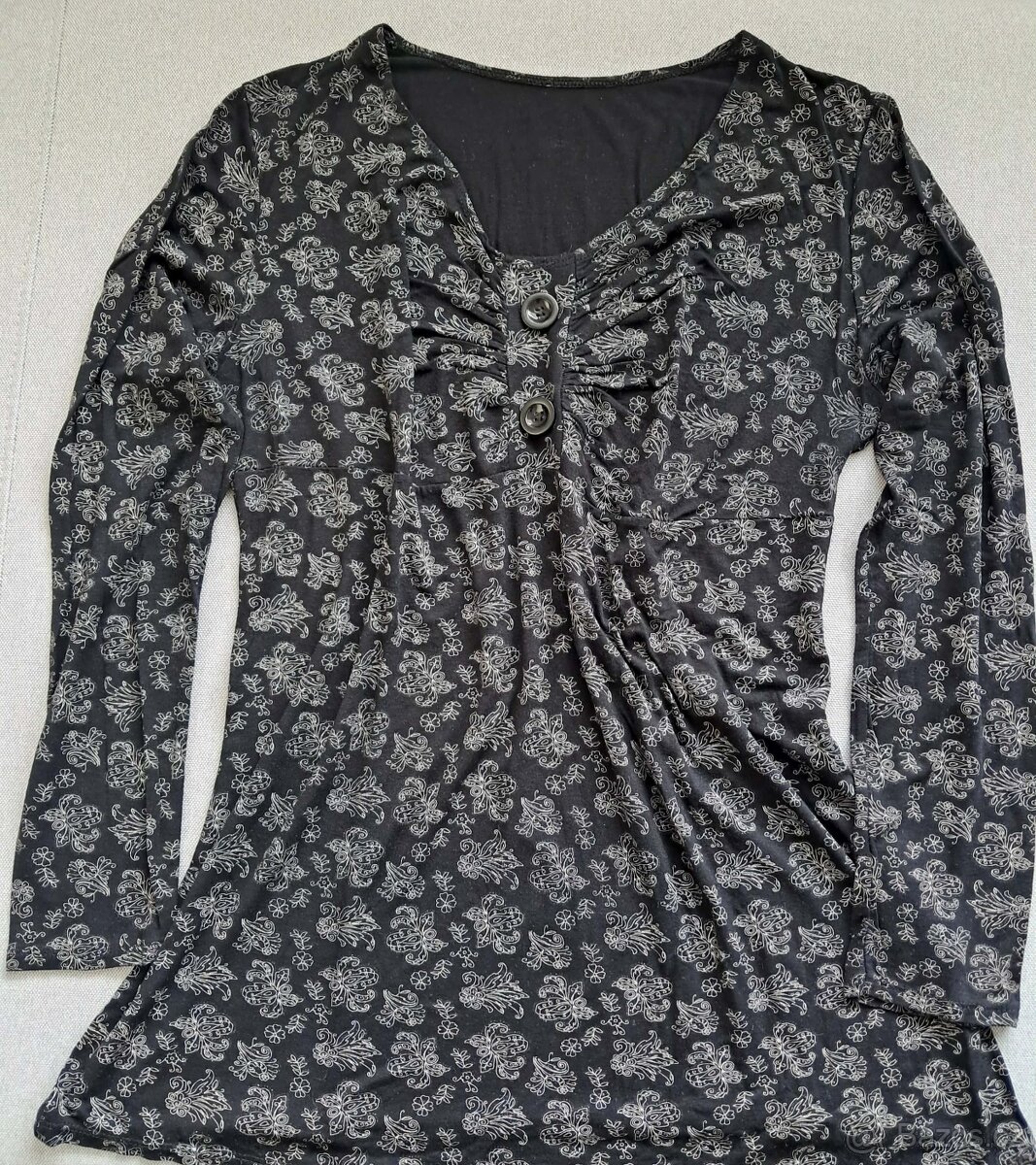 Halenka černobílá, s třpytivou nitkou, delší, pružná, bavlněná, velikost XL, stav dobrý.