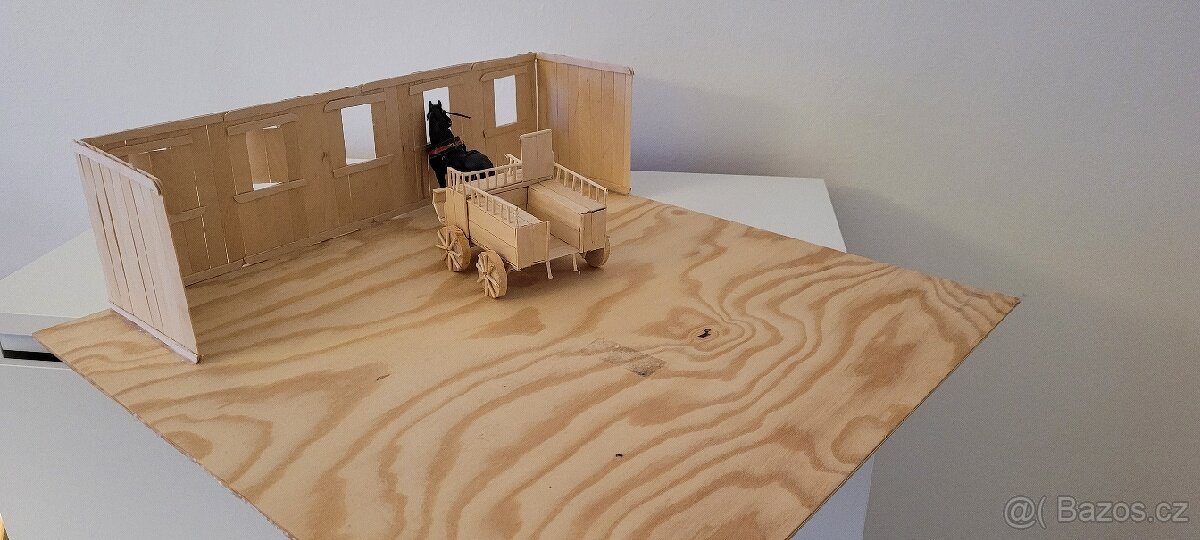 Ruční práce, překližka, březové dřevo, možné dodělat a podporit dětskou kreativitu. kůň s provozem je jen pro určení měřítka, není součástí prodeje.