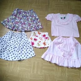 Prodám dětské letní sukně: 1) modro-bílá sukně v pase na gumu, rozměry: délka 41 cm, pas 2x 30 cm, cena 50 Kč. 2) strakatá sukně v pase na gumu, rozměry: délka 40 cm, pas 2x31 cm, cena 50 Kč. 3) sukně s květy v pase na gumu, vel. 98 cm, pas 2x 25 - 28 cm, cena 30 Kč. 4) růžový komplet - sukně s blůzičkou, vel. 5 - 7 let, rozměry sukně: délka 41 cm, pas min. 2x 22 cm a max. 2x 39 cm, blůzička: délka 42 cm, šířka 2x 39 cm, cena kompletu 100 Kč.