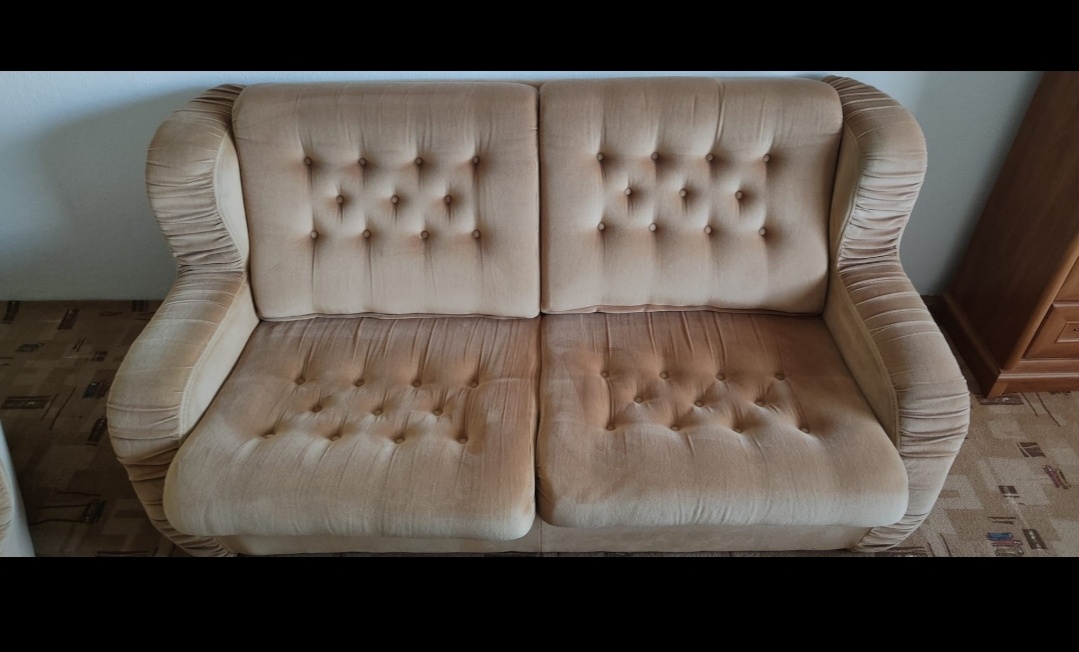 Prodáme starý gauč a dvě křesla. Gauč nelze rozložit i vrže. Může někomu ještě posloužit. Gauč 500,- Kč Křesla po 250,- Kč Počítejte s oděrky a nějakými nedostatky. Gauč i křesla jsou lehké.