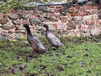 Prodám 2 indické běžce vylíhnuté pod kachnou 28.7.2025. Kačenka šedivé barvy a kačer šedivohnědočerný. Vhodné na zahradu. Cena kachna 400,- a kačer 350,-. Pouze osobní odběr.