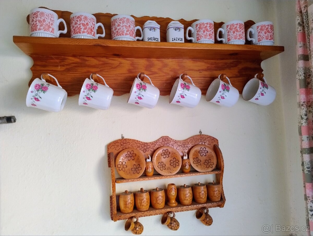 Prodám retro poličku i s příslušenstvím celé na obrazku. Osobní odběr