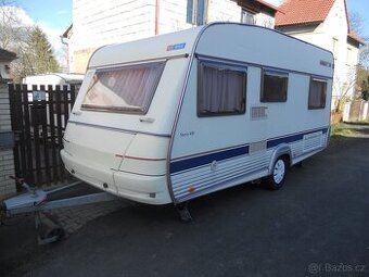 Prodám karavan Wilk Stern 450, r.v.2002, al-ko náprava se stabilizátorem a držákem dvou jízdních kol na zádi karavanu, celouzavíratelný předstan s přístavbou, automatický MOVER s baterií, velké střešní heki okno, francouzská postel, a další rozložitelné sezení, lednice s mrazákem, tříplotýnkový sporák a nerez dřez, plynové topení trumatic s automatickým zapalováním a rozfukem po celém karavanu, nádrž na vodu plněná zvenčí, el.bojler, kabinka s otočným wc a sprchou, 2* servisní dvířka, na všech oknech jsou sítě proti hmyzu a rolety na noc včetně dveří. Délka je 647cm., Výška je 250cm., Šířka je 230cm., Váha je 1035kg celková je 1300kg. Karavan je dovezený z NL a vše je odzkoušeno a plně funkční a ve velmi hezkém stavu. Rychlost je 100km/hod. České doklady STK 2/28