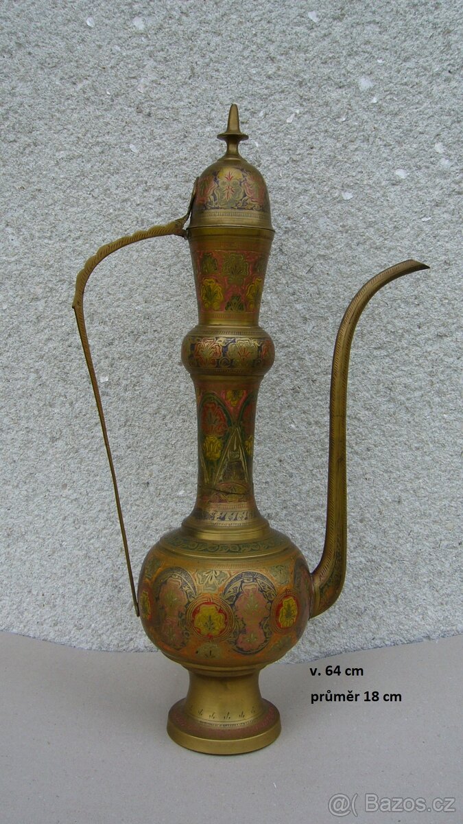 Prodám: Krásnou zdobenou orientální konvici s víčkem, výška 64 cm, zn.: India, za 1.700,- Kč