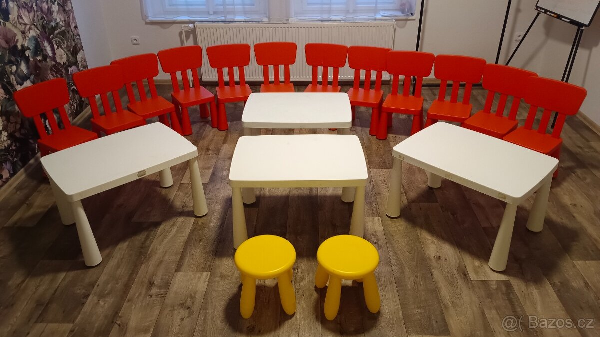 Nabízím k prodeji set dětského nábytku pro trpaslíky 🙂 4x plastový stůl IKEA (kus 300,-),12x plastová židlička IKEA (kus 200,-) a 2x plastová stolička IKEA (kus 100,-) Vše je v dobrém stavu a nepoškozené 👍🏻 Celkem za celý set: 3.800,- Pořizovací cena: 8.000,-